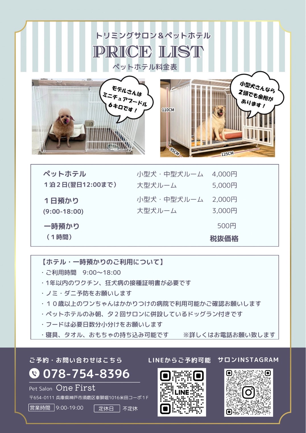 ●大きさや体重によって料金が異なる場合があります。